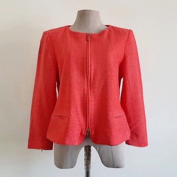 ELEGANCE PARIS 復古紅色羊毛外套 女款 人字紋西裝外套 M 號