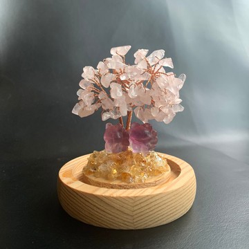 天然原礦水晶許願發財樹 (橄欖石/粉水晶/黃水晶/白水晶/黑瑪瑙)