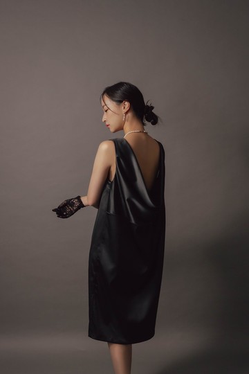 黑曜石緞面羅馬領洋裝