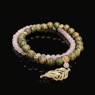 【盛夏印象/Impression on August】花綠石粉晶雙手鍊 | 水晶手鍊
