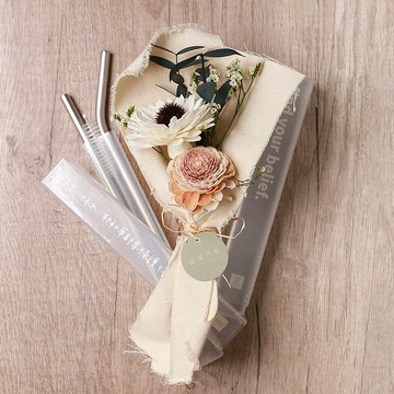 HIS-不銹鋼吸管組 質感抽拉盒 小花束組 經文設計 文創