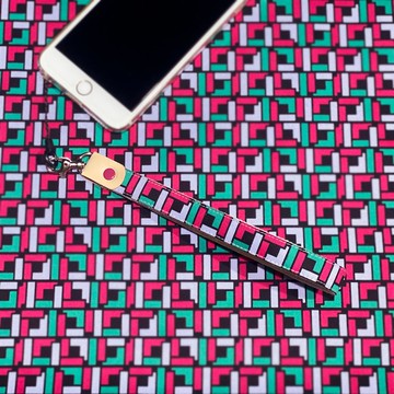 復古幾何 手機繩/ 吊繩/ 手提繩 - 桃粉綠