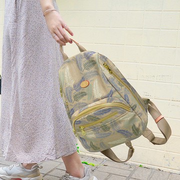 羽毛草系側拉鍊防盜後背包13012(小款-奶茶)