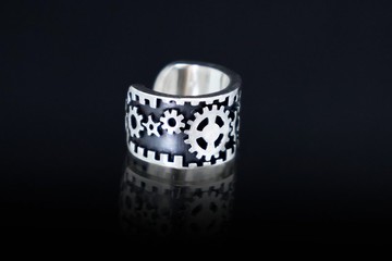 以齒輪與機關點綴的迷你耳骨夾,採用純銀材質,散發工業風的蒸汽龐克美學。男女皆適用的設計。此款耳骨夾無需耳洞,舒適的結構能穩定服貼於耳廓,輕鬆佩戴。耳骨夾內部直徑 9mm,寬度 8mm,厚度 1.5mm。重量約 2.3g。單只販售製作時間:20 個工作天