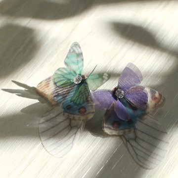 蝴蝶薄紗耳環一對&水鑽925銀耳針式 pierced or clip-on earring
