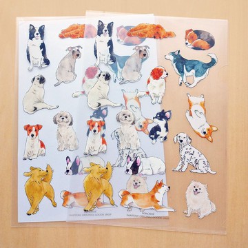 此設計在狗狗圖案的部分特別加上了白色油墨印刷。16 隻可愛的狗狗會巧妙地「若隱若現」地遮蓋住放入文件夾中的紙張。為了讓您清楚看見效果,我們在照片中放入了白色的影印紙進行拍攝。背面則為無印刷的透明狀態。尺寸:直向 310 × 橫向 220mm材質:聚丙烯一組兩入水彩畫 水彩插畫