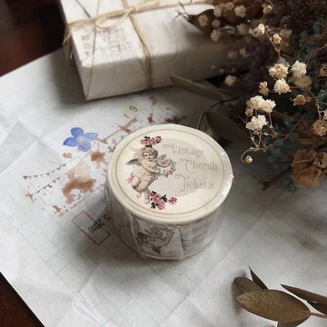 Vintage Cherub Tickets 票據紙膠帶香港設計,台灣生產。採用日本和紙,特殊油墨印製,25mm x 10m。循環長度為38cm。