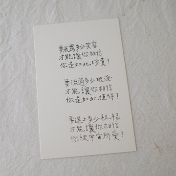 要展露多少笑容才能讓你相信你是如此珍貴?要流過多少眼淚才能讓你相信你是如此值得?要送上多少祝福才能讓你相信你被宇宙所愛?/想與你一起成為一個願意相信的人/瑪芬紙尺寸約11*15公分