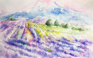 标题 丁香时间尺寸:35 厘米 x 56 厘米(13.8 英寸 x 22 英寸)这幅风景画宛如童话世界。晶莹剔透的山峦、淡紫色的绸田、清澈透明的空气和无边无际的自由感,让人仿佛置身画中。这幅作品放在暖色调的室内,尤其是浪漫多情、喜欢周游世界、亲眼目睹明亮、令人难忘的风景的人的家中,会显得格外温馨。这幅原画是用水彩颜料在质地厚实的纸张上创作的。棉纸表面的纹理非常舒适。印刷品是在高质量的设备上创作的,如果需要,可以用颜料手工绘制。
