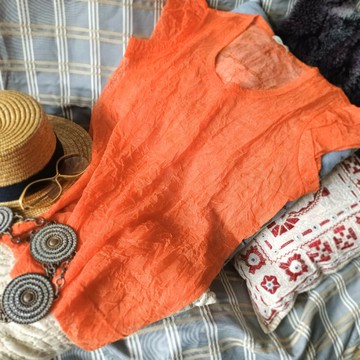 這款用料為日本皺紋網布的花瓣小蓋袖女裝上衣,具彈性和透視效果. 皺紋自然持久, 易乾不易變形, 容易打理. 用不同內搭的衣服來演變出不同風格和配色. 百搭而多變好玩.例如內裡穿搭不同顏色的背心或tube top, 配色或撞色, 或條子的或圓點的, 制造不同的視覺效果, 創作出獨一無二的個人搭配風格,**設計細節**日本小格子網布的皺褶紋理, 造出特別的視覺效果, 和強化了物料的彈性.小蓋袖靈感來自層次有致的花瓣.**材質**100%聚酯纤维網布 (日本面料)產地/製造方式位於香港的小型精工辦房