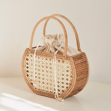 **“Cup”藤编编织包,内衬米色面料如图。** 尺寸 **- 长度 21- 宽度 19- 不含把手高度16cm(含把手高度28cm)
