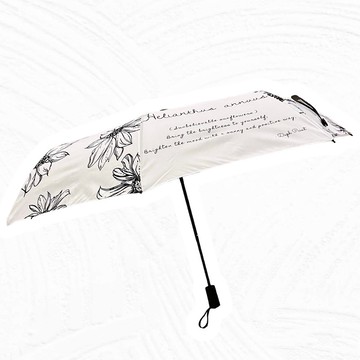 尺寸• 雨傘重量:295克• 打開後直徑:925mm產品詳情圖案:太陽花顔色:圖案(黑白色) / (黃白色)主體:高密度碰擊布 190T布質 : 較柔,布面呈啞色不易反光性能:抵禦冷縮熱漲良好,阻光性較好