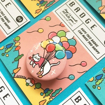 ▨ 欸,我想告訴你徽章 / 追夢貓飛飛飛飛是隻愛做夢的貓總想著有天可以像天空中的小鳥自由自在的飛翔他嘗試了跳床 跳啊跳啊的 還是只能在原地跳他嘗試了用紙做一雙翅膀 貼在雙手爬到樹上往下跳結果還是失敗了但他不氣餒 開學典禮上看著學校把氣球放到空中飛他想到氣球或許可以讓他夢想成真一顆不夠就再加一個加到他飛上去為止果然,就在第99顆的時候他飛了起來飛離了學校飛離了小島飛離了所有難過不開心往他想飛的地方飛去他的夢想之地♡#鍥而不捨#夢想 #自由自在https://c2.staticflickr.com/2/1734/42563209462_612ecd562d_b.jpg每個徽章都會有屬於他的小故事搭配每張不同的底卡 變成一幅可以說故事的圖:)https://c2.staticflickr.com/2/1740/27745305327_613f8dbb46_b.jpghttps://c2.staticflickr.com/2/1721/42563209732_a4b85b1bac_b.jpghttps://c2.staticflickr.com/2/1730/28740546538_cea9ef11a9_b.jpghttps://c2.staticflickr.com/2/1757/27745307557_9df121067b_b.jpghttps://c2.staticflickr.com/2/1733/27745308957_03f8571db6_b.jpghttps://c2.staticflickr.com/2/1741/27745309387_8c03561047_b.jpg▨ 數量1個▨ 材質塑膠▨ 尺寸直徑32mm▨ 產地台灣made in TAIWAN