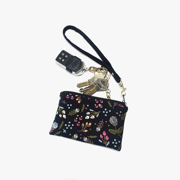<商品介紹>-\t拉鍊開合。-\t鑰匙包內側有一開放式口袋,可置放感應磁卡或其他卡片。-\t可容納遙控器,長型鑰匙也放得下喔!-\t附有活動式腕帶,可套於於手腕上。-\t可當零錢包使用,多用途收納小包。<材質>厚棉布貼襯、帆布、鑰匙圈金屬配件、金屬鈎扣、YKK拉鍊。<尺寸>高約8cm,長約12.5cm腕帶長約15cm(不含五金配件-鈎扣,腕帶長度無法調整)<洗滌說明>建議手洗。洗滌時請先將金屬配件卸下。請勿乾洗或漂白。手工製作,非機器大量生產,每個手作品的圖案會因布樣之剪裁取布而圖案位罝不同,所以,每個手作品都是獨一無二的圖案。商品顏色可能因拍攝環境、光線與電腦螢幕設定不同, 而產生些許色差,以實際商品為主。產品為手工製作,顏色尺寸規格可能會有些許差異。產地台灣 手工用心製作