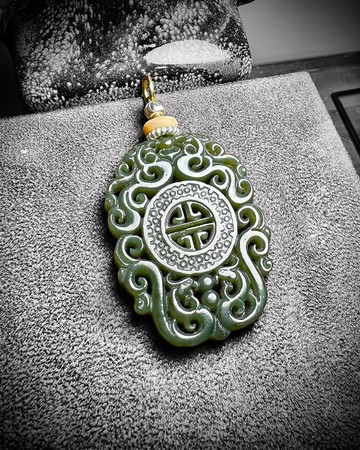 【商品材質】《925國際公定純銀》《黃銅》《和田青玉》和田青玉是在特定的地質環境下,由鎂質大理岩經過接觸變質作用形成,其主要礦物成分是透閃石和陽起石,而青色則是微量鐵元素致色的結果。 和田青玉的主要成分也是透閃石,陽起石系列礦物,其中透閃石含量可達95%以上。青玉之所以呈現青色調(從淡青色到深青色、灰青色、黃綠色等)。是因為在形成過程中,玉石中混入了微量的鐵元素,鐵元素的含量差異導致了顏色的深淺不同。 和田青玉具有安神助眠有助於平復情緒、緩解焦慮和改善睡眠品質,在古代,青玉常被用作護身符,佩戴者相信它可以驅邪避凶、保平安,擺脫厄運的困擾。青玉色澤沉穩、質地細膩,在古代被視為「君子之玉」,象徵著清廉、剛毅和品德高尚,有助於陶冶情操,佩戴或把玩青玉可以帶來心理上的安撫感,使人心情平靜,緩解壓力。 (※天然玉石都有各自獨特的紋路,所以每一款的寶石色澤與紋路都會有所不同,皆是正常現象)【商品尺寸】和田青玉 鏤空龍鳳壽紋 單吊墜(含墜頭)寬4cm 高7.4cm 厚0.5cm【商品包裝】精緻包裝盒 / 精美麻or絨布袋 / 防氧化密封夾鏈袋 / 小拭銀布1片【保養方式】1.飾品在沒有配戴時請密封保存防止氧化,避免配戴著游泳、泡溫泉及接近海水等酸性物質造成侵蝕毀損2.將含有天然成分的洗手乳塗抹飾品後輕輕刷洗飾品再以清水洗淨,用布擦拭後即可恢復光澤3.使用拭銀布擦拭後,再用清水洗淨飾品並用布或毛巾拍乾即可恢復光澤(ps.因為大多拭銀布上面都含有藥劑,所以使用完再用清水把殘留的藥劑洗掉,這樣就可以有效避免過敏的問題)【購買須知】▼▼▼※購買本商品都有一年的售後服務(免費更換消耗品 : c圈更換. 線材長度.老舊與鬆脫維護),如需更換耗材時.運費部分必須由購買者承擔,敬請見諒,感謝您的購買!※商品在手機或電腦螢幕上會有不同的色差,還是需已寄出的商品為主,並且每項商品都是以手工製作的,上面有手作痕跡皆為正常現象,請安心購買。※商品僅有瑕疵、損壞時才可提供退換貨, 寄回運費會進行評估,並在查明原因後會與您溝通商討由誰支付,這點必須特別注意,請確認清楚再下單會比較安心喔。◎有任何問題都歡迎與我們聯繫喲,感謝關注