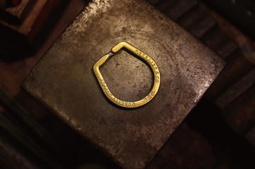 METALIZE在推出基本型雙圈後目前又設計出了此款,更具復古感的雙圈,特殊的蹄型外觀,即使單獨使用也別有一番風味,相同的以全黃銅製作,雙面刻印,但不同於前款雙圈為平面刻印,微微弧形的表面更是我們所追求的細節,尺寸:33x36mm 面寬3.8mm 厚度:3mm材質:黃銅/Brass※黃銅質地較一般鐵質軟,故不建議撐得過大以免變形無法閉合。INFOMaterialBrassSIZE33x36mm Face width/3.8mm Thickness/3mmNOTICEWipe Clean With A Damp Cloth.