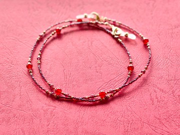 採用了鮮紅的天然石瑪瑙與石榴石,以及深紅色的玻璃珠。這是一條可作為口罩掛繩、眼鏡繩,或項鍊使用的三用串珠鍊。石榴石是1月的誕生石。鮮豔的紅色綴以金色,是襯托此季節的華美串珠飾品。推薦作為聖誕禮物、犒賞自己的禮物,或是迎接新年添購的新選擇♪將兩端的連接零件扣合,即可作為項鍊佩戴。若作為口罩掛繩使用時,請取下所附的眼鏡掛繩扣。◆石榴石 (Garnet) 1月的誕生石。寶石語包含「真實」、「熱情」、「友愛」、「繁榮」、「收穫」等,蘊含著恆久的愛戀、友情、忠誠等多重意義。◆紅玉髓 (Red Carnelian) 被稱為「招來幸運之石」、「領導者之石」,是擁有「成功」與「勝利」寶石語的7月誕生石。材質:天然石(紅玉髓、石榴石)、玻璃珠、尼龍包覆鋼絲、金屬扣環全長:約66cm◎將以可直接贈送的精美包裝寄出。【⚠️購買前請務必詳閱】 懇請您理解以下內容後再訂購。◎金屬過敏者請注意。若使用時發生任何狀況,恕不負責。◎天然石因其特性,在形狀、色澤等方面可能存在個體差異,並可能 seen inclusions(內含物的小黑點或裂痕)。◎螢幕顯示可能導致實際顏色略有差異。◎鋼絲雖然強度高且耐用,但一旦彎折,便會留下痕跡且無法恢復原狀。請小心使用。◎所有商品均為手工製作。雖用心製作,但若不幸遇損壞,請與我們聯繫。若材料許可,亦可維修。維修時將酌收費用。◎恕不接受因「顏色不如預期」、「與想像中不同」等個人因素之退換貨或取消訂單。僅受理到貨時的破損或瑕疵。若有任何疑慮,請務必於訂購前提出詢問。◎為防止汗水或水分造成的劣化,建議您使用後以柔軟的布等輕柔擦拭保養。