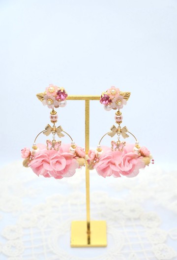 蝴蝶櫻花盛開施華洛世奇愛心水晶永生花耳環