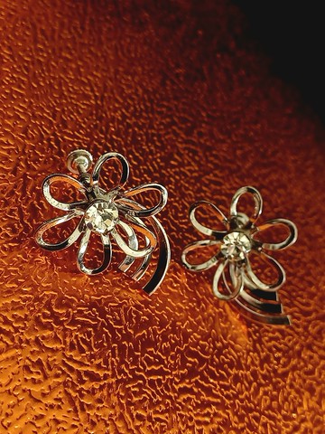 vintage jewelry 縷空花卉萊茵夾式耳環