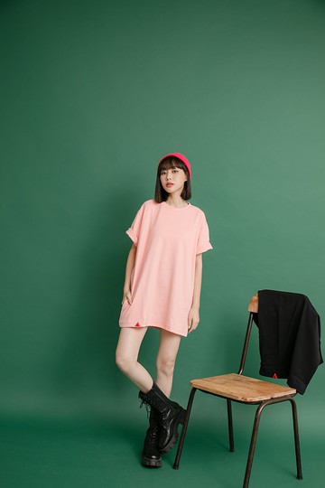 超大上衣短袖 - 淡粉色