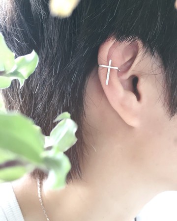 **十字架 純銀耳骨夾**925 silver 純銀 / 1 支 為單位耳骨夾是很百搭的耳環,對沒有穿耳洞的人來說是很棒的選擇~ 對已經有耳洞的人來說,還可以有多樣式的搭配,是一種樂趣。我們製作這款耳骨夾的時候,做了好幾次實驗,嘗試不同的作法,最後以這個定案。每個人的耳骨長不一樣,要能夾得住又舒服,主體呈現要美感和乾淨,終於在嘗試不同的作法後找到最合適的方式。戴起來沒有被夾的不舒適感覺但它就是貼穩的夾在耳骨上,我們用心在這設計當中的巧妙和細節,當你擁有MIH耳環的時候就能親自體會囉!MIH Jewelry 是以金屬 "銀" 為製作素材, 不是以蠟雕鑄造或銀黏土的方式,而是直接使用整塊銀來手工製作,我們每個物件的金屬密度比蠟雕鑄造和銀黏土更高。直接以金屬來手工製作的難度較高,也更費時費力。當你擁有MIH金工首飾的時候,你將體驗到金工訂製品的獨特和價值。產地/製造方式產地台灣 手工製作