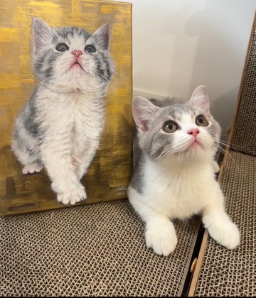 原創油畫 動物寵物肖像 白色小貓 尺寸 6x4 英吋