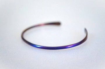 以純鈦精心打造的纖細手鐲。可見紫色系、藍色、金色等繽紛色彩。內圍直徑約 47mm (內側最寬處)開口寬度約 24mm橢圓形款式(管理)・2φ125→φ50・25120→φ47・25