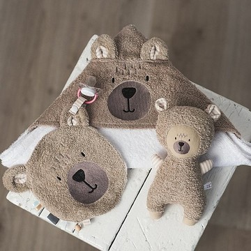 套裝:泰迪熊毛巾、搖鈴玩具、假人支架