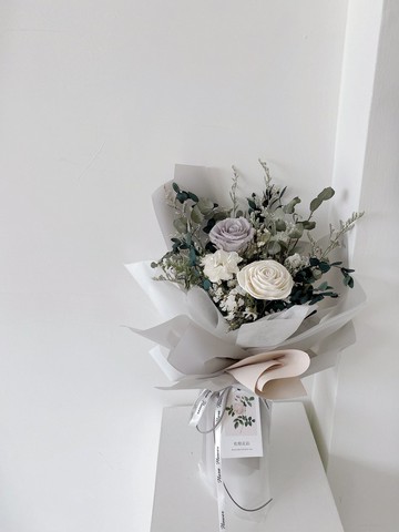 此商品可以指定到貨時間 ,如需要請於備註欄位填寫商品介紹 /花材使用 : 永生玫瑰,尤加利葉,索拉花,星辰花,卡司比亞 等等 尺寸大小: 寬面約28cm x 高度35cm工作天數 : 1-3工作天(除非指定到貨時間)商品收貨時間: 宅配 1個工作天 / 超商取貨 2-3個工作天(注意:花店吊牌的圖案會不固定唷~~~)https://live.staticflickr.com/65535/49404258573_0a61d41daa_b.jpghttps://live.staticflickr.com/65535/49404258623_2b7d8765df_b.jpg注意事項 /.植物生長各有異,沒有對稱或完美無瑕花瓣,完美主義者請慎思。.花禮均為手工製成,成品不會與照片完全一模一樣,若有花材缺貨,設計師將會適時調整更換花材。.乾燥花寄送過程難免會有些許掉落情況屬正常現象。保存方式 /.乾燥花保存良好可放置數月至2年,仍會隨著時間自然褪色風化掉落。.永生花(不凋花)保存良好可放置2~5年,仍會隨著時間慢慢褪色。.乾燥花與永生花(不凋花)放置乾燥通風環境,避免潮溼與陽光直射,可延長觀賞期限。