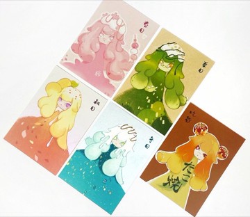 插畫家自行設計繪製跟著四季來一場點心之旅春日 來一串「日式糰子」夏日 抹茶冰沙「消暑解渴」秋日 檸檬栗子塔「微涼中帶有一點暖意」冬日 奶蓋雪花冰「彷彿置身在北國飄雪的季節」吃貨 讓人難以抗拒的章魚燒你~喜歡哪一個材質:星鑽紙