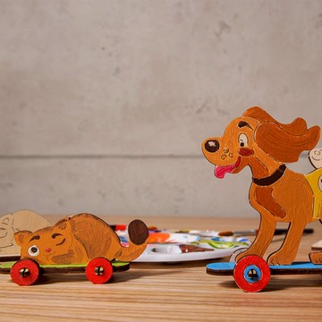 https://youtu.be/M3i-PXMJJ8U適合5歲以上的孩童組裝,你可以獨自或是跟朋友或家人一起享受組裝及上色的樂趣。木製零件上已刻上貓咪和狗狗溜滑板的模樣,只需照著輪廓塗上你喜歡的顏色有助孩童的認知和發展喵喵跟汪汪都很會溜滑板,但比賽時誰會贏呢?也許你會猜汪汪贏,畢竟汪汪們是那麼的有活力,但別忽略喵喵靈巧的身手讓牠在遇到轉彎的時候總能輕易地超車,讓我們來比賽看看吧!培養工程技能,空間思維和精細運動技能長時間培養孩子們的想像力。材質環保無毒由優質木材製成,具有芳香的木質香氣,觸感舒適。容易組裝所有零件都已被切斷,可以輕鬆將他們從零件板上移除。附有淺顯易懂的彩色說明書,組裝過程中不需膠水等黏著劑或特殊工具。在孩子們組裝的過程中,大人可以從旁給予些建議與幫助:像是零件與零件間的連接都有對應的插槽跟接腳,只需插入零件的接腳再用手指按壓就可組合,但如果手指太小,可能需要一些幫助。可愛裝飾在年輕(和成年)藝術家的幻想、想像力和創造力的幫助下,每個UGEARS著色模型都會呈現獨特而美麗的外觀,這將讓您的精神始終位於桌面上。附件:模型組裝步驟圖片零件數量:8包裝尺寸:16.5*18*0.5 公分模型尺寸:8.5*3.2*4 公分/11.5*3.2*10.2 公分難易度:簡易組裝時間:30分鐘繪畫時間:2小時以上 注意事項:1. 環保木質,遠離火源2. 建議5歲以上使用3. 家長可協助組裝及著色4. 此商品僅模型本身,並無附著色用品及顏料