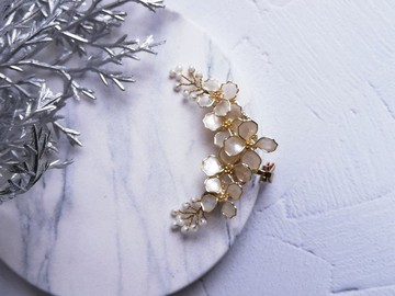 耳骨夾採用精緻的白色花朵和玻璃珠設計,營造出華麗的外觀。耳朵上的精緻設計非常適合婚禮、成年儀式、入學儀式和畢業典禮等特殊場合。即使日常使用,您也可以享受時尚。享受為您的耳朵著色的華麗。每朵花均採用浸漬藝術製成,並以樹脂加固。花朵的邊緣像褶邊一樣呈現波浪狀。請注意,每件作品都是獨一無二的,因為它是手工製作的。【材料】金屬絲、樹脂、玻璃珠【尺寸】約 4.7 公分長 x 3 公分寬・・・【處理】✓佩戴完畢後,我們建議用軟布擦拭並將其存放在自封袋或盒子中。✓ 避免潮濕並存放在黑暗的地方,以避免變色。✓配戴時請小心,以免弄濕。如果弄濕,請用乾布擦拭。✓使用樹脂的作品可能會有小氣泡。