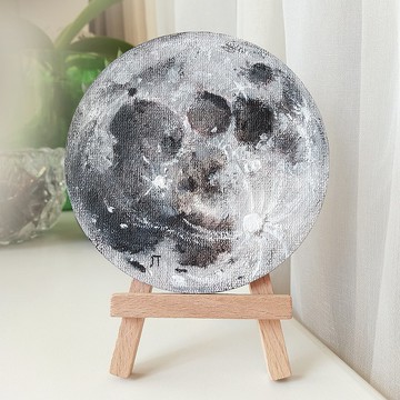 原創丙烯畫月亮藝術宇宙小圓形裝飾