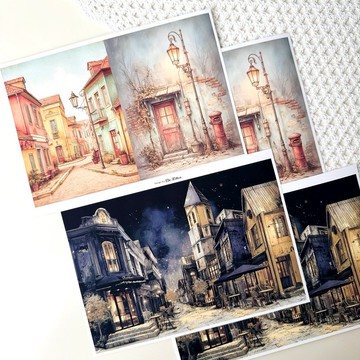 油畫-古老多彩的城市房屋、街道、城市景觀-原創手工製作