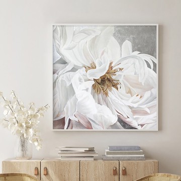 白牡丹畫作 原創藝術 花卉油畫 畫布花卉藝術品