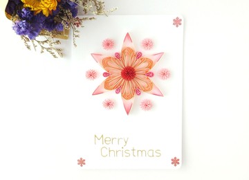 手作捲紙卡片-雪之戀 雪花聖誕卡 粉色系