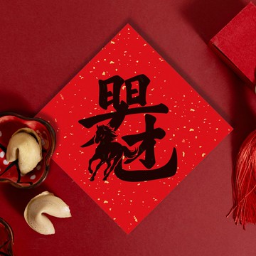 【2026 馬年手寫春聯】金墨單字滿 | 斗方 26*26 cm