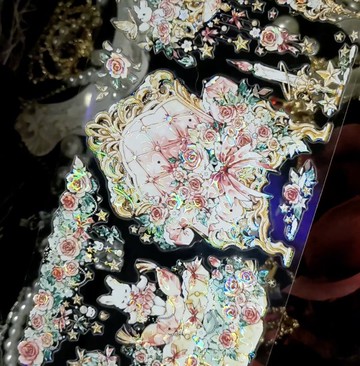 鎏金茶會 小さな仲間と薔薇城 PET 貝殼光 割型貼紙卷 (kiss-cut)