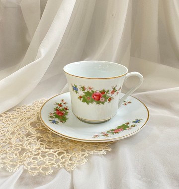 【好日戀物】台灣古董古件-典雅花卉陶瓷茶杯組
