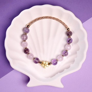 夢幻花語 - 18k 包金紫、粉晶設計手串