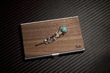 胡桃木金屬羽毛名片夾免費刻字設計簽名