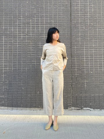 夏日百搭 溫柔鮭魚粉 透氣純亞麻 高腰西裝寬褲