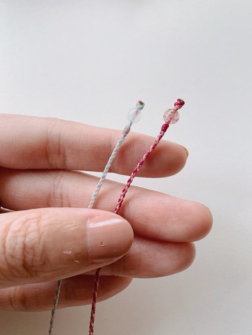 ::幸運繩皆單條販售;商品標題/內文/訂購選項都有敘述款式內容,若還是不確定的請截圖來信詢問喲::玫瑰石英粉+寧靜粉藍再加點薄荷綠 甜蜜又浪漫/充滿幸福的夢幻色細節/**四股編/月光石珠扣♡**線色/ 玫瑰粉+粉藍+薄荷綠/雖然我們的招牌金剛結幸運繩已經是極細了~但還是很多客人想要更細的!!於是,我們挑戰製作出超極細的幸運繩♡這次也是使用極細蠟線,並以四股編精編而成的超極細幸運繩!成品真的很細,手感細細軟軟的,是因為我們選擇較軟且親膚的蠟線喲!戴起來很沒有存在感!但也不會輕易鬆開!不用擔心會不經意間丟失喲♡♡品牌故事♡**• musubi • 浪漫生活的祈願幸運繩 / 許願繩 / 結緣繩 •**musubi為傳統中注入清新感,有點可愛,有點氣質,特別挑選極細蠟線及五色線以祈福的金剛結一結一結地精編而成,編織起來比一般幸運繩來的花時間,但是佩戴起來十分秀氣,傳統的底蘊中帶有典雅的氣質!推薦給喜歡戴細細手環的人!也希望我們編織的幸運繩能帶給戴著的你勇氣♡♡♡/**這款還是一樣不厭其煩的堅持請您提供最貼手圍!**我們建議留0.6~0.8公分鬆度(請用皮尺或細線衡量自行斟酌參考)ex.最貼手圍14.5公分+0.7公分鬆度=15.2公分全長**如沒有特別備註需求或是全長尺寸,尺寸手圍一律默認另+0.7公分的鬆度! 謝謝您!**•因為製作完成的幸運繩無法修改長度,不退不換也無加錢修改喲~所以最貼手圍尺寸請一定要好好測量喲~ 如果不確定怎麼看,可以來信讓我們幫您再次確認喲!我們都很樂意為您服務♡/*金剛結是一種繩結,在藏傳佛教中,是一種護身符,避邪保平安•照片中的顏色可能會依顯示螢幕的差異有些微差異。*天然水晶礦物、半寶石本身都有能量場,購買後可以在大廟香爐過三圈淨化後佩戴,各種宗教可依自己的方式淨化加持。•天然石、微寶石每顆品相都不同,可能會有些許裂紋、礦坑、天然紋路、黑點混色等極小瑕疵,我們會盡量挑選品相佳者,請確定能接受再下訂喲。*蠟線比傳統中國結線材耐用,可長時間佩戴,不必特地取下***可碰水戴著洗澡睡覺都沒問題♡**•超過**(含)20公分以上**手圍/腳圍請另外詢價,感謝您!•給香港及國外的朋友:我們是寄**航空掛號(非順豐)**請填證件姓名及收件地址喲,謝謝!♡下訂前請先詳閱賣場公告欄:-)付款完成後**隔天開始算製作工作天約3-7天(不含例假日不含六日)**✨**但實際製作工作天還是以設計館公告欄為主**,感恩。✨每條手環都是接單客製+手工精編,每天編製的數量有限!還請您體諒及感謝您的耐心等候💕 另外商品庫存量並不是現貨,幸運繩皆依客訂手圍製作,無現貨!謝謝♡