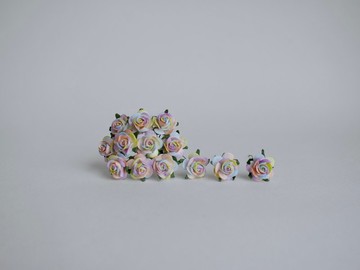 - 小玫瑰紙花;彩虹色- 數量為 50 朵裝於 1 個塑膠袋中。- 100% 手工製作花朵- 人造花材料尺寸- 花朵尺寸:2.0 公分- 綠色鐵絲莖部長度:7 公分