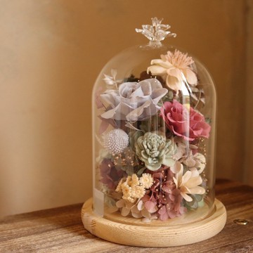 永生花玻璃罩 - 粉藍幻想曲