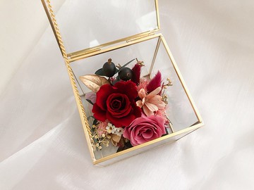 金邊玻璃珠寶盒,質感滿滿~商品尺寸:10*10公分|怎麼保存|乾燥花、永生花不要曬太陽、不要碰水、放置陰涼處可以擺放兩年多至三年多,根據保存環境條件而定乾燥花、永生花受潮發霉請以酒精擦拭如遇灰塵沾粘,請以吹風機調製低溫低風速吹拂|怎麼運送|使用防撞雪梨紙保護包裝,也可至賣場加購韓風透明提袋送禮自用兩宜之外,可盡量減低運送過程中碰撞毀損問題。/ 購前需知 /- 照片為實品拍攝,但因手工製作及花材形態,無法保證商品完全一樣- 乾燥花、永生花本身脆弱,開箱難免會發現少許花屑掉落,超完美主義者請考慮仔細再下單- 因為花材皆為季節性若遇缺貨,我們會在色系跟整體樣貌不變的狀況下會為您設計搭配適當的花材- 乾燥花、永生花為天然素材,運送時難免會有碰撞而少許掉落,我們會盡力妥善包裝保護商品- 您收到商品有任何問題,請不要急著給予差評,與我們聯絡後會盡快為您處理