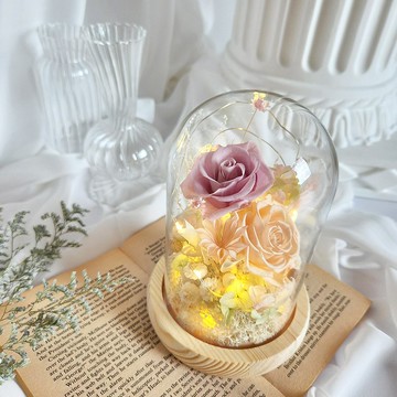 【Flora Flower】永生花大玻璃罩夜燈-紫粉