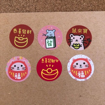 【迷你揮春貼紙包】一包兩張 掌心尺寸 原創插圖美國製高品質貼紙