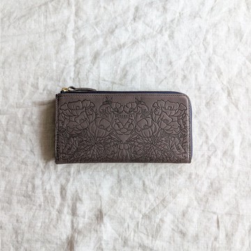 日本製 不需摺疊鈔票的纖細長夾 花卉圖案 蔓藤花紋 三加陽 本革 迷你錢包 隨身錢包 花卉圖案 灰 ssb04gray