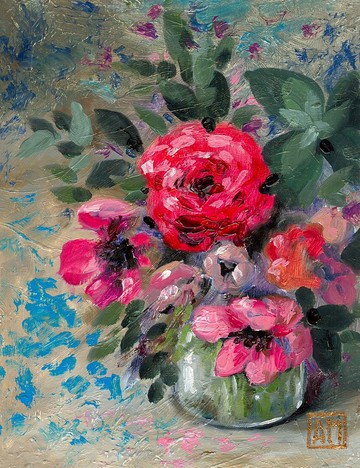 原創藝術品-鮮豔的花束-手繪油畫